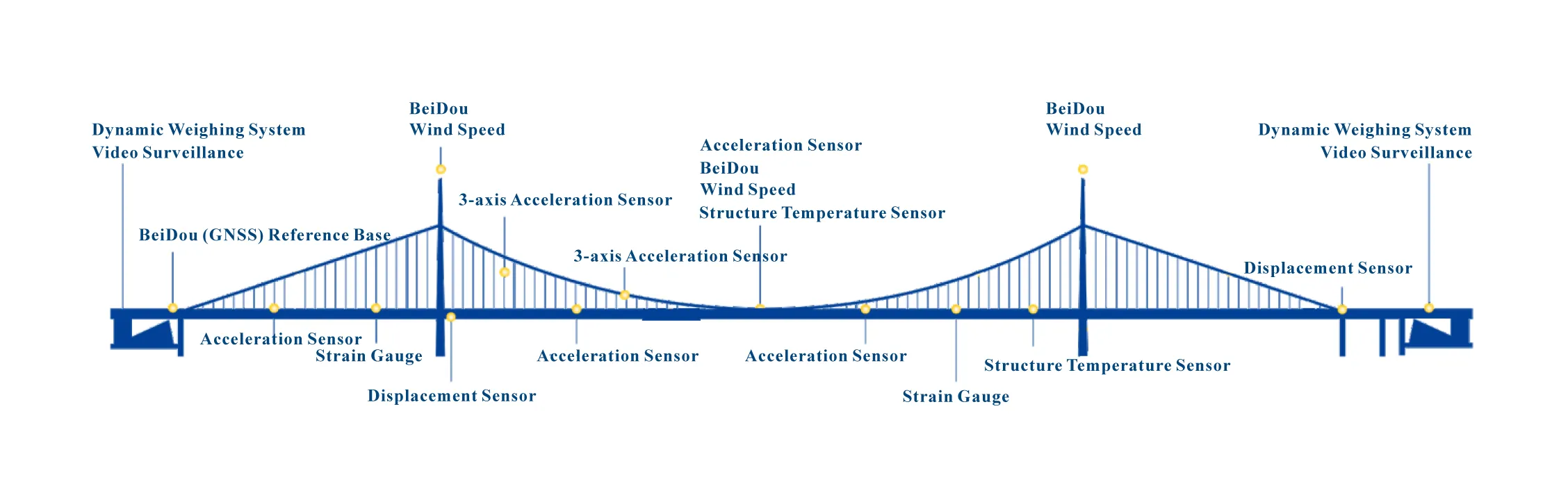 Bi danîna senzorên cihêreng, amûrên wergirtina daneyan, û alavên veguheztinê li ser strukturên pirê, pîvandina otomatîkî ya demdirêj li ser bandorên barkirina pirê, bandorên jîngehê, û bersivên avahîsaziyê têne kirin. Daneyên pîvandî bi navgîniya teknolojiyên ragihandinê yên têl an bêtêlê ve ji platforma ewr re têne şandin, karûbarên wekî çavdêriya avahiya pira dûr, hişyariya zû ya serhêl, nirxandina rewşê, û piştgiriya biryarê peyda dike.