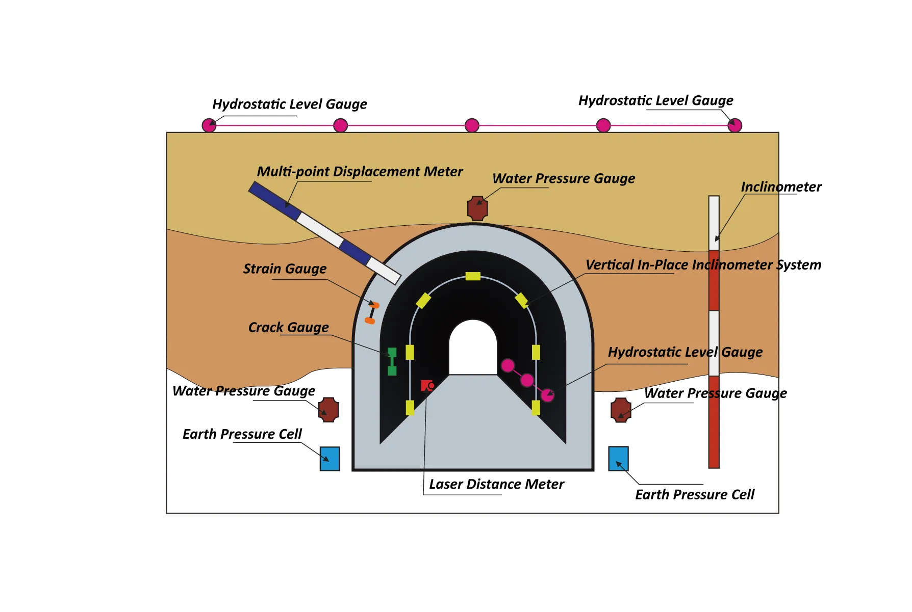Niştecîhkirina tunelê, çavdêriya lihevhatinê, şikestina tunelê, çavdêriya çenga strukturel, hwd.